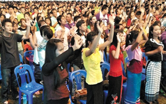 Aún así, 3.000 personas entregaron sus vidas a Cristo durante el encuentro de dos noches, celebrado en la capital de Yangon el 24 y 25 de julio, informa Teen Mania. La multitud se reunió en el Estadio Insein Football al aire libre a pesar de la lluvia torrencial.