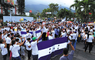 Alrededor de un centenar de iglesias evangélicas de Honduras marcharon recientemente por varias zonas de la capital y otras ciudades del país en conmemoración del Día de la Biblia. En puntos estratégicos los participantes se detuvieron a orar y pedir por la protección divina para el país.