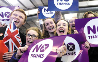 Los votantes escoceses dijeron "no" a la independencia y decidieron seguir siendo parte del Reino Unido, en un histórico referendo que sacudió el país. La decisión impidió la ruptura de una unión de 307 años con Inglaterra y causó un enorme alivio al "establishment" político británico.