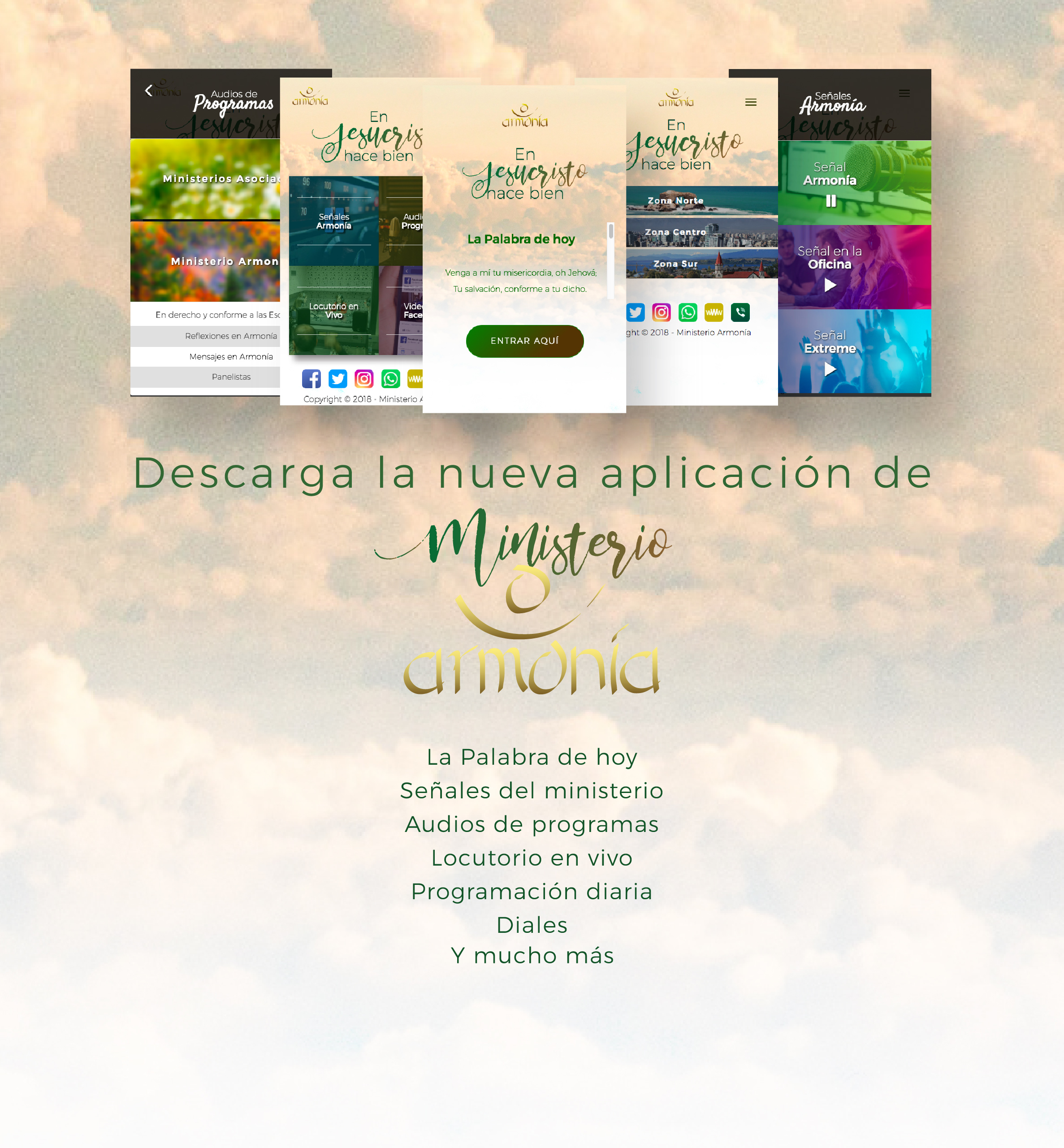 ¡Hoy es un día especial! Como Ministerio Armonía estamos felices de anunciar el lanzamiento de una nueva plataforma para que todos nuestros hermanos y auditores en todo Chile y el mundo, puedan disfrutar de nuestra programación.